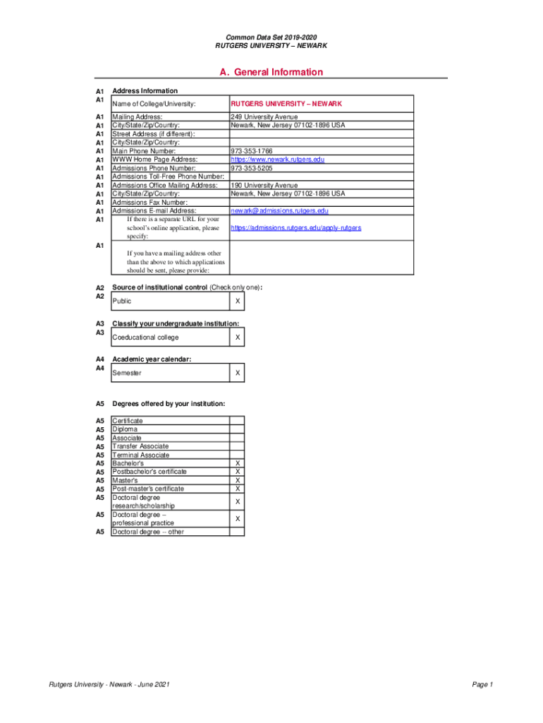 Common Data Set 20192020 RUTGERS UNIVERSITY NEWARK. General Information A1 A1 A1 A1 A1 A1 A1 A1 A1 A1 A1 A1 A1 A1 A1Address Information Name of College/University:RUTGERS UNIVERSITY NEWARKMailing