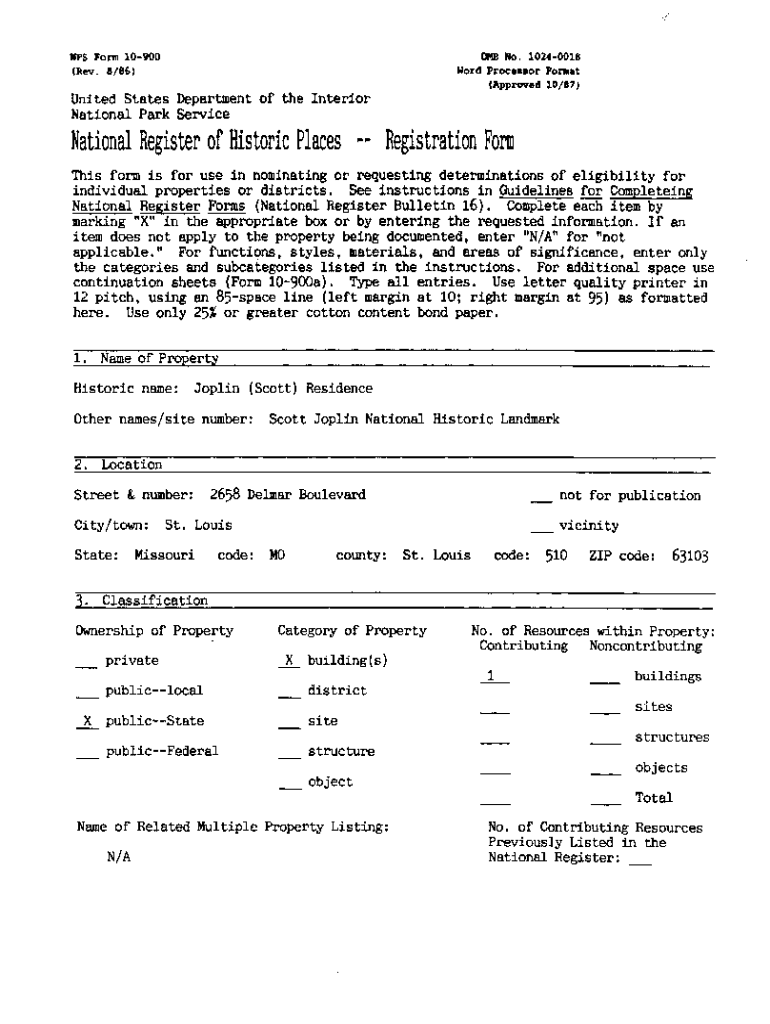 0 MB No. 10240018 Word Processor Formats Form 10900 (Rev. 8/86)(Approved 10/87)United States Department of the Interior National Park ServiceNational Register of Historic Places Registration Form