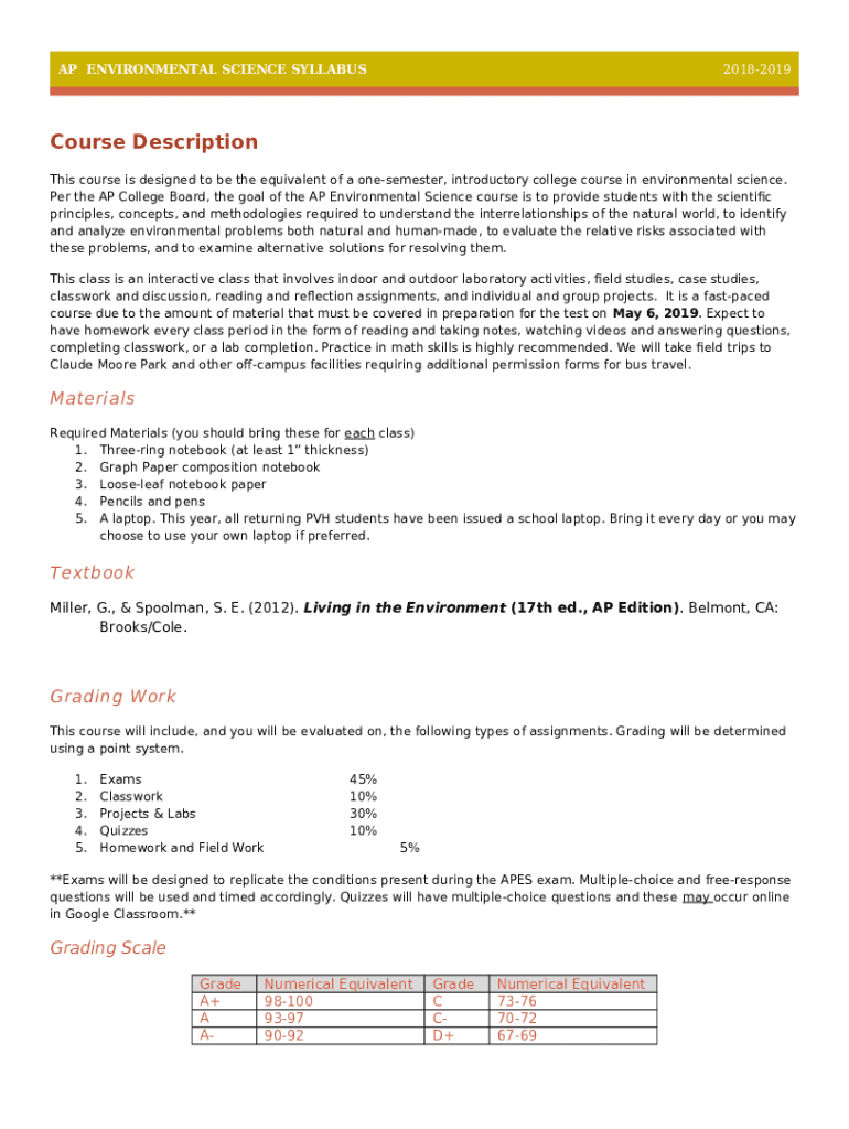 The AP Environmental Science AUT High School is a writable document needed to be submitted to the specific address in order to provide specific information. It must be filled-out and signed, which may be done in hard copy, or with the help of a particular solution e. g. PDFfiller. This tool allows to complete any PDF or Word document right in the web, customize it depending on your purposes and put a legally-binding electronic signature. Once after completion, user can easily send the AP Environmental Science AUT High School to the appropriate recipient, or multiple recipients via email or fax. The editable template is printable too thanks to PDFfiller feature and options offered for printing out adjustment. Both in digital and in hard copy, your form will have a neat and professional outlook. You may also save it as the template to use later, there's no need to create a new document from the beginning. Just edit the ready form.