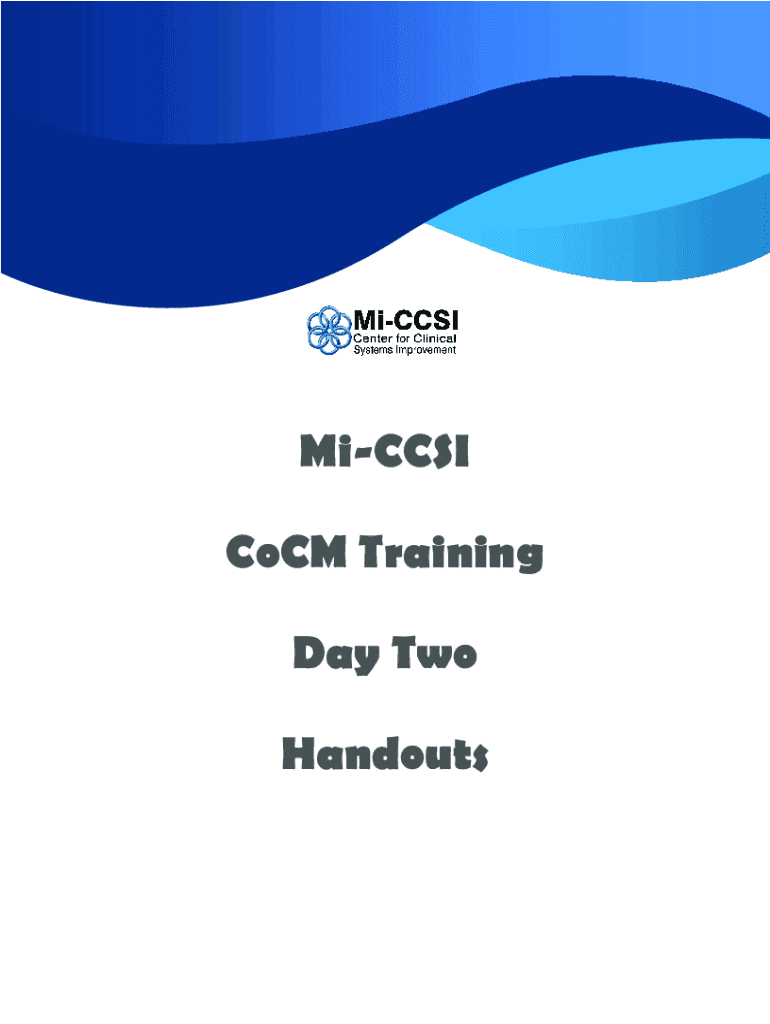 Mic CSI Com Training Day Two Handouts1. Motivational Interviewing GL MH TTC Workbook Pages 3342.MH TTC SHIRT Screening & Brief Assessment Questionnaires. Pages 35443. Cycle of DepressionPages 45464.