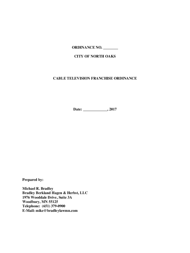 ORDINANCE NO. ___ CITY OF NORTH AMICABLE TELEVISION FRANCHISE ORDINANCEDate: ___, 2017Prepared by: Michael R. Bradley Berk land Hagen & Herbs, LLC 1976 Wood dale Drive, Suite 3A Woodbury, MN 55125