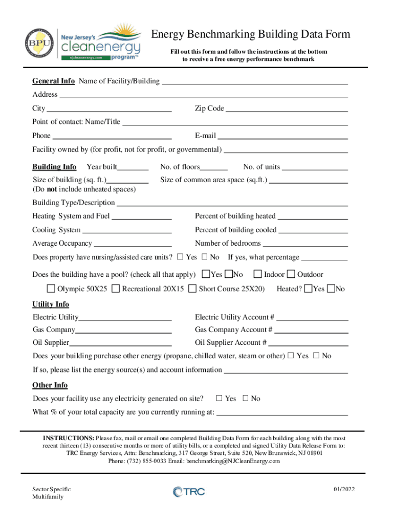 Energy Benchmarking Building Data Form Fills out this form and follow the instructions at the bottom to receive a free energy performance benchmarkGeneral Info Name of Facility/Building Address City
