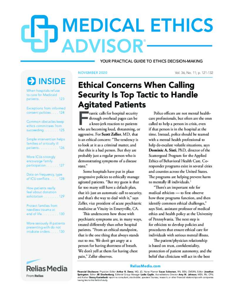 YOUR PRACTICAL GUIDE TO ETHICS DECISION-MAKING NOVEMBER 2020INSIDE When hospitals refuse to care for Medicaid patients. . . . . . . . . . . . 123 Exceptions from informed consent policies. . . . .