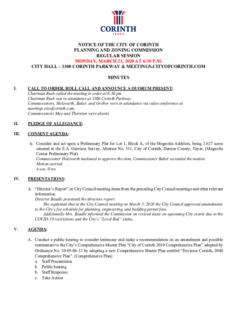 Get the free notice of the city of corinth planning and zoning commission regular ...