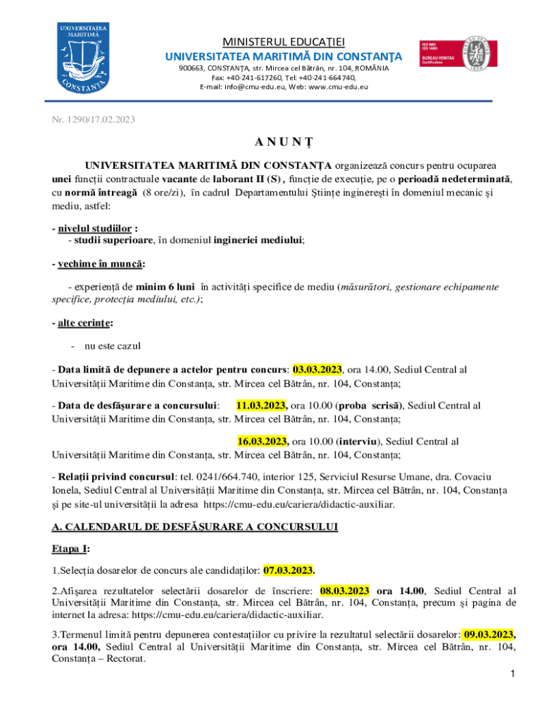 Email: info@cmuedu.eu, Web: www.cmuedu.euNr. 1290/17.02.2023ANUN