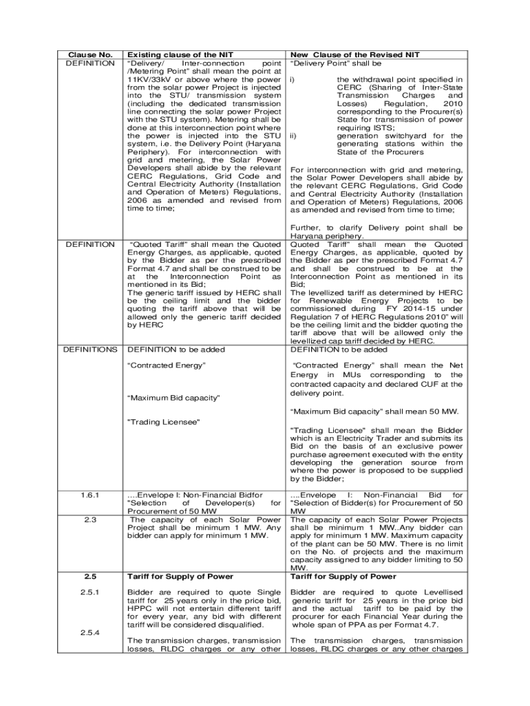 Clause No. DEFINITIONDEFINITIONDEFINITIONSExisting clause of the NIT New Clause of the Revised NIT Delivery/ Interconnection point Delivery Point shall be /Metering Point shall mean the point at 11KV/33kV