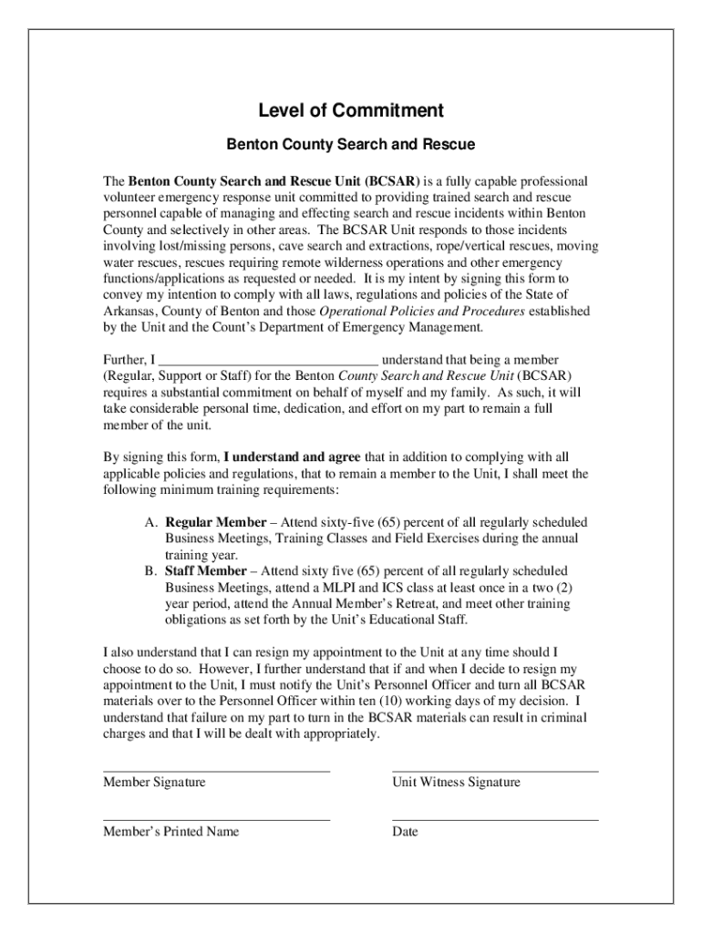 Level of Commitment Benton County Search and Rescue The Benton County Search and Rescue Unit (CSAR) is a fully capable professional volunteer emergency response unit committed to providing trained