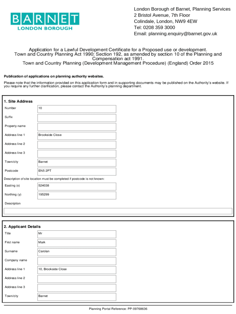 Application for a Lawful Development Certificate for a Proposed use or development. Town and Country Planning Act 1990: Section 192, as amended by section 10 of the Planning and Compensation act 1991.