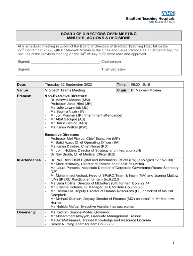 At a scheduled meeting in public of the Board of Directors of Bradford Teaching Hospital on the