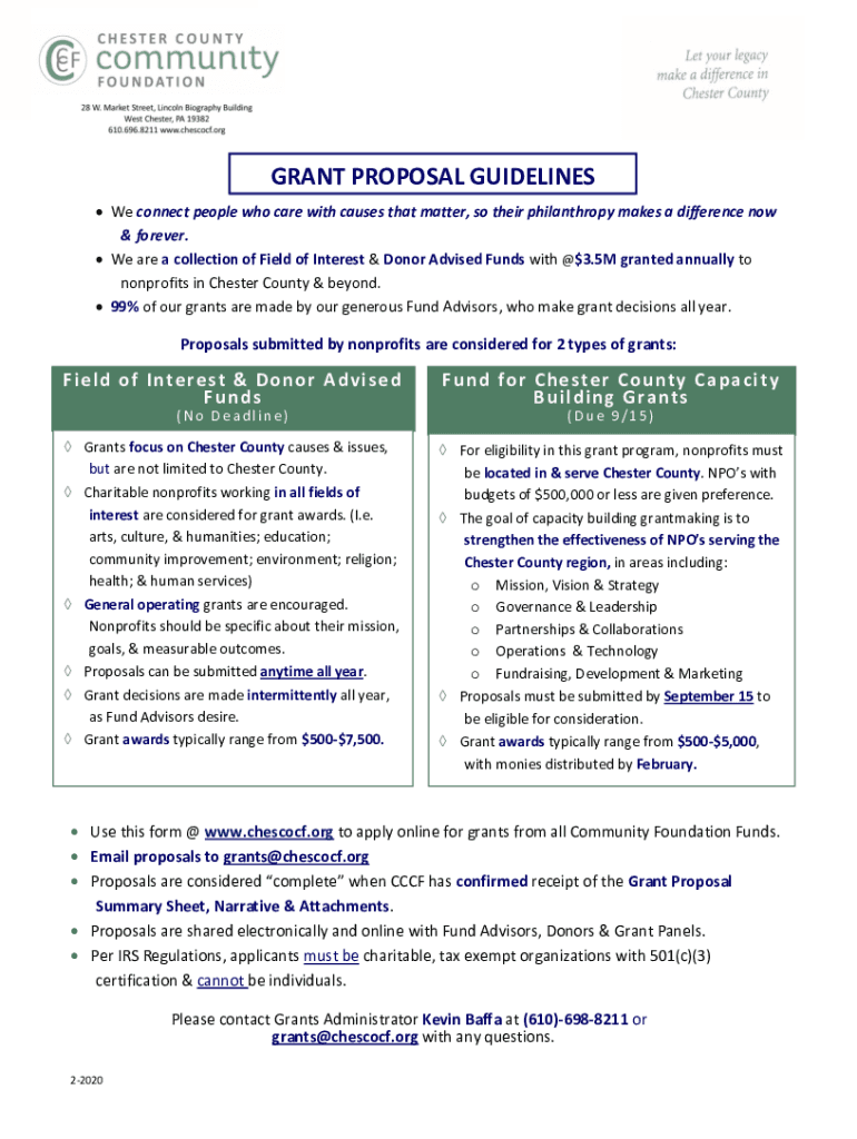 GRANT PROPOSAL GUIDELINES We connect people who care with causes that matter, so their philanthropy makes a difference now & forever. We are a collection of Field of Interest & Donor Advised Funds