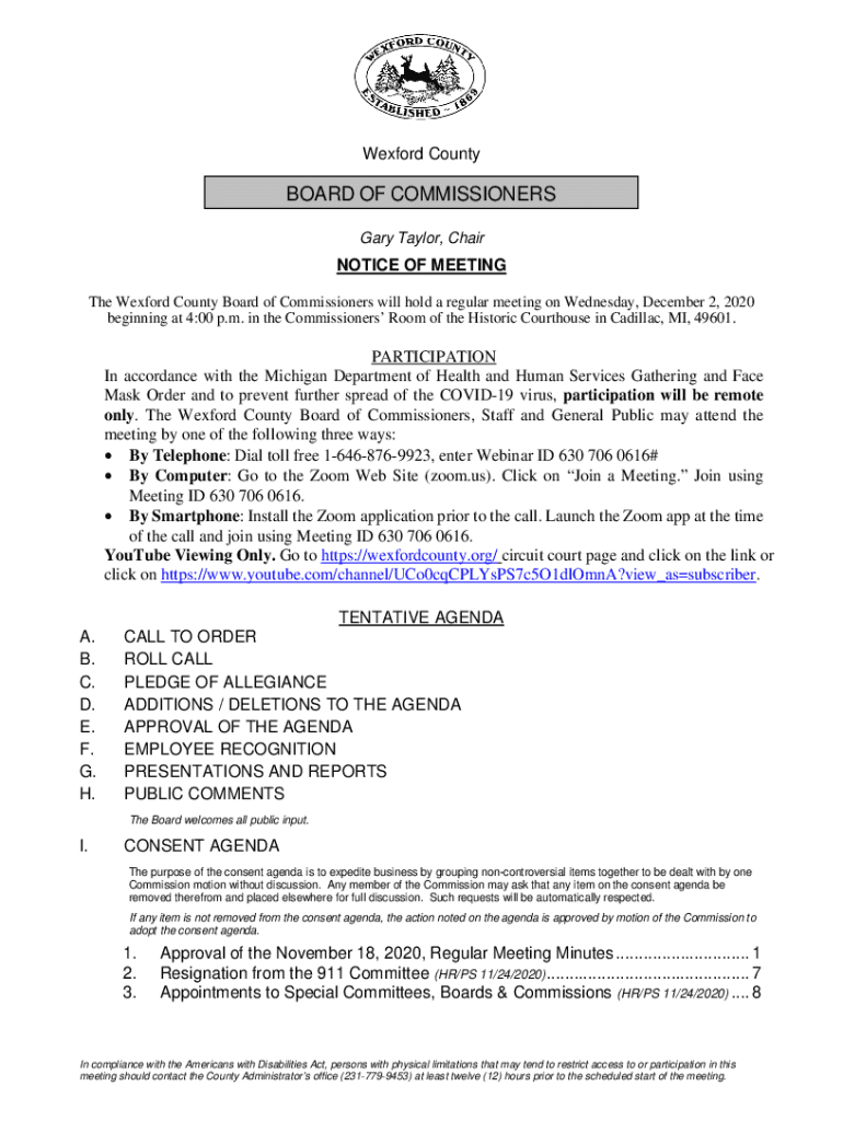 The Oxford County Board of Commissioners will hold a regular meeting on Wednesday, December 2, 2020,