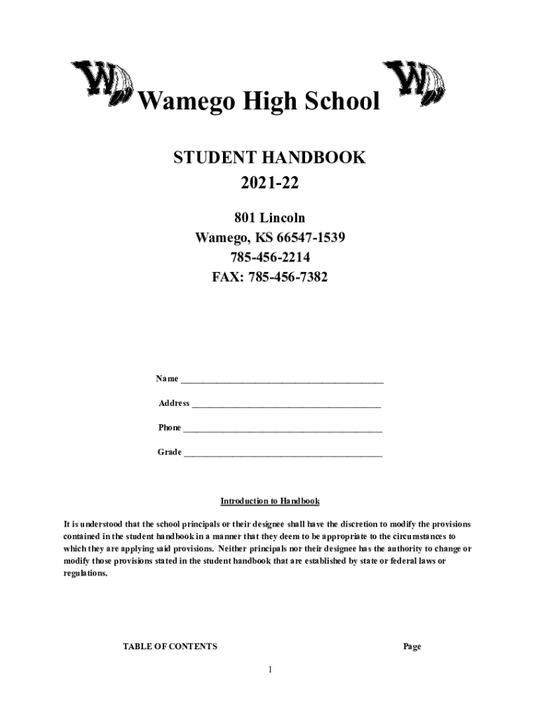 Cameo High School STUDENT HANDBOOK 202122 801 Lincoln Cameo, KS 665471539 7854562214 Faxes: 7854567382Name ___ Address ___ Phone ___ Grade ___Introduction to Handbook It is understood that the school