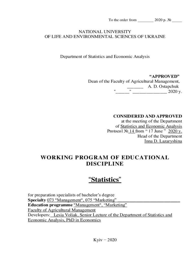 OF LIFE AND ENVIRONMENTAL SCIENCES OF UKRAINEDepartment of Statistics and Economic AnalysisAPPROVED