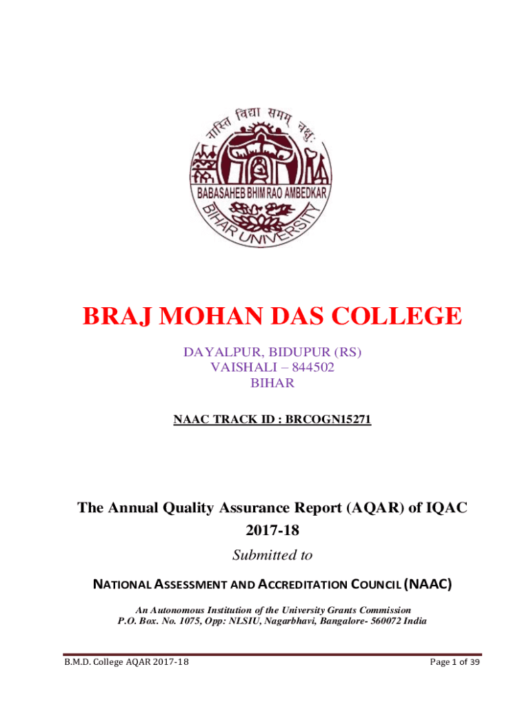 NAACP TRACK ID : BRCOGN15271The Annual Quality Assurance Report (AGAR) of IAC