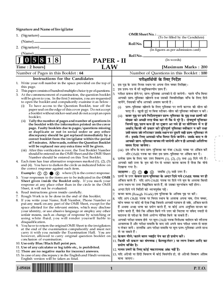 Get the free Signature and Name of Invigilator OMR Sheet No. : - Studocu