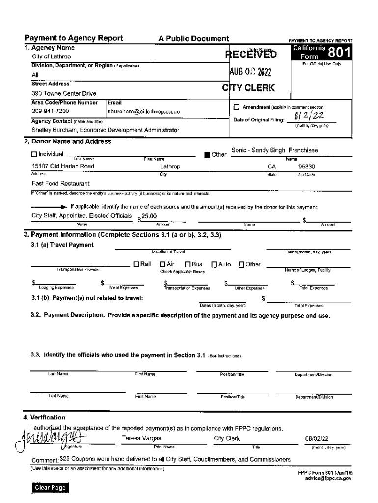 Payment toReportAgencyA Public DocumentPAYMENTTOAGENCYREPORT1. Agency Name