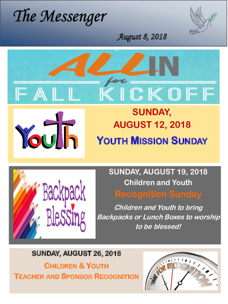 AUGUST 12, 2018YOUTH MISSION SUNDAY, AUGUST 19, 2018,