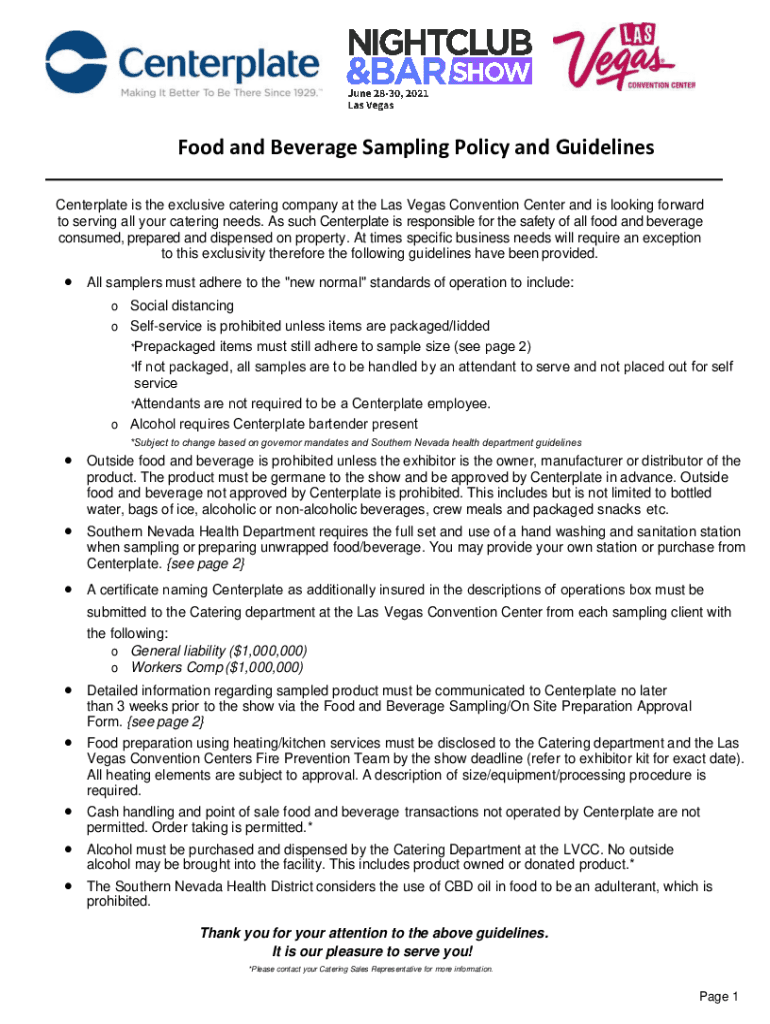 Food and Beverage Sampling Policy and Guidelines Center plate is the exclusive catering company at the Las Vegas Convention Center and is looking forward to serving all your catering needs. As such