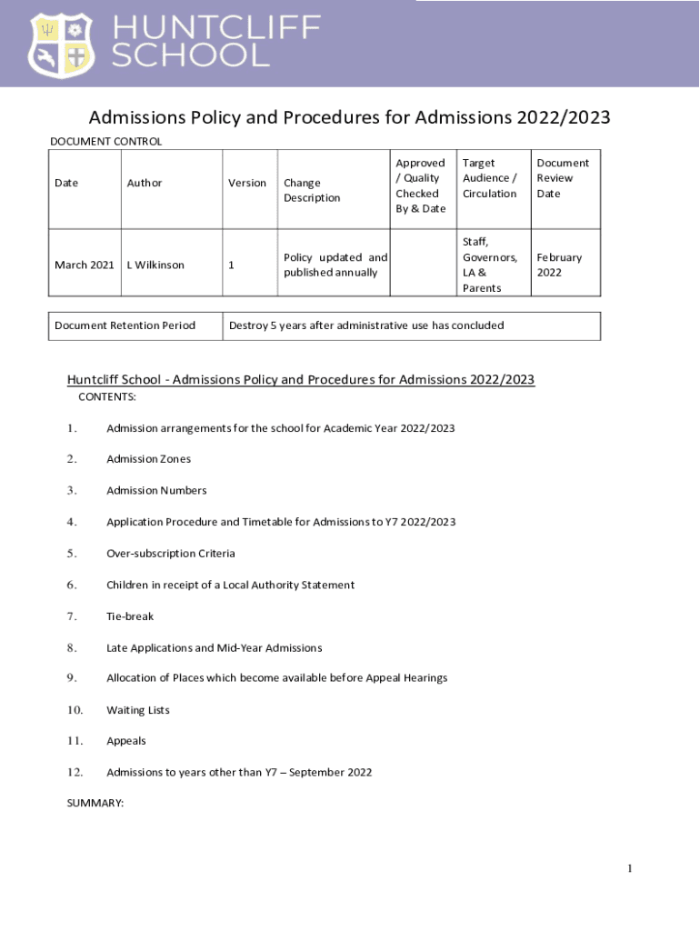 The institution's admissions department or committee is responsible for filing undergraduate admissions policies.