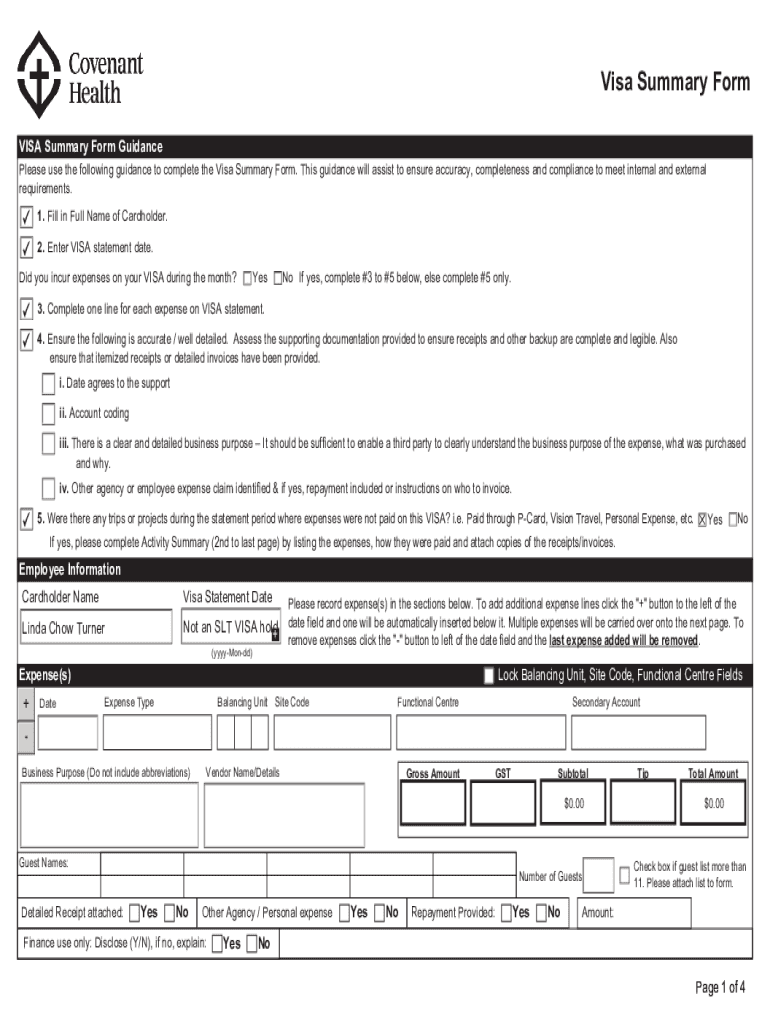 Visa Summary Form VISA Summary Form Guidance Please use the following guidance to complete the Visa Summary Form. This guidance will assist to ensure accuracy, completeness and compliance to meet