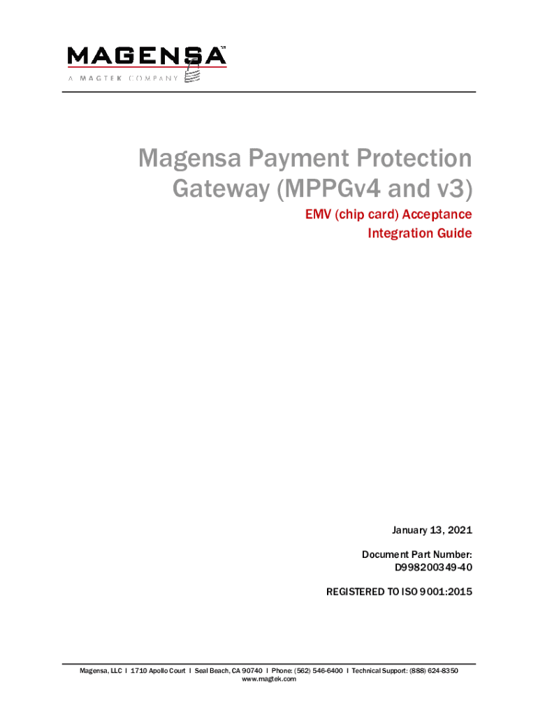 Magenta Payment Protection Gateway (MPPGv4 and v3) MV (chip card) Acceptance Integration Guide January 13, 2021, Document Part Number: D99820034940 REGISTERED TO ISO 9001:2015Magensa, LLC I 1710 Apollo