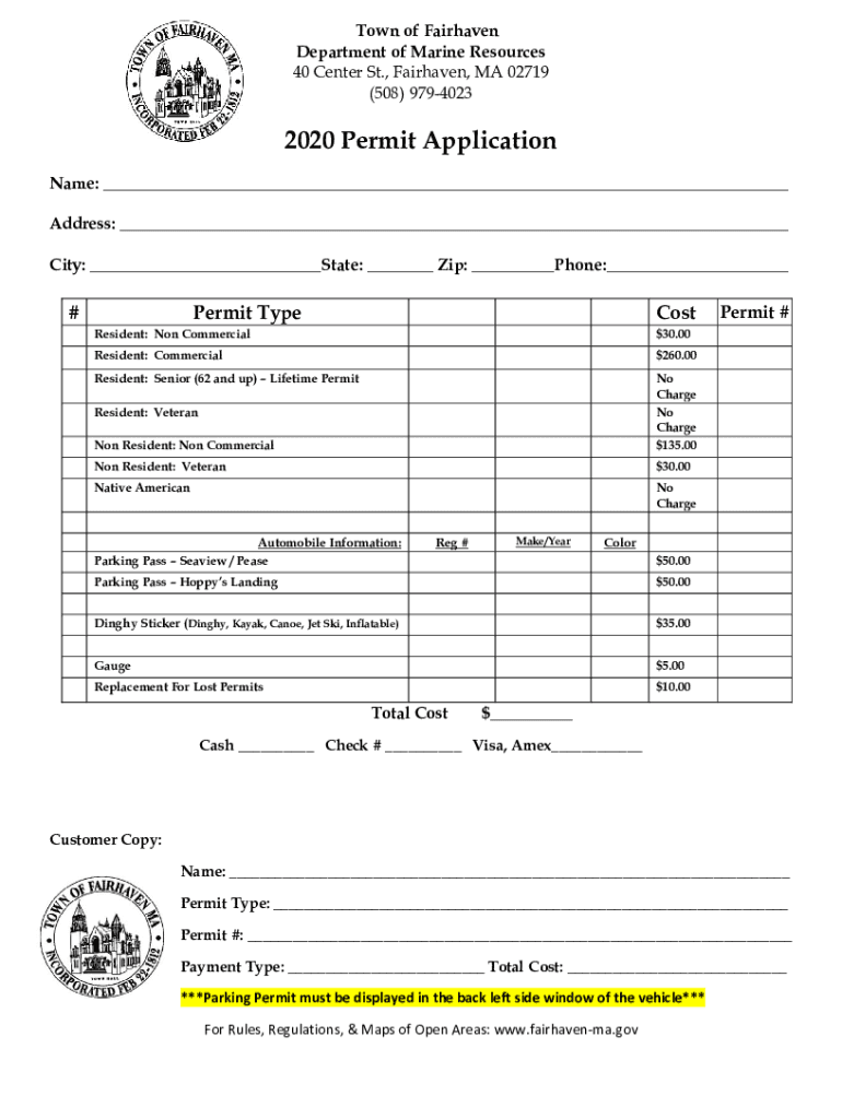 City: ___State: ___ Zip: ___Phone:___#Permit TypeCostResident: