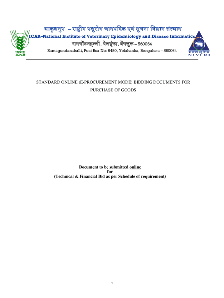 Ramagondanahalli, Post Box No: 6450, Yelahanka, Bengaluru 560064STANDARD ONLINE (PROCUREMENT MODE) BIDDING DOCUMENTS
