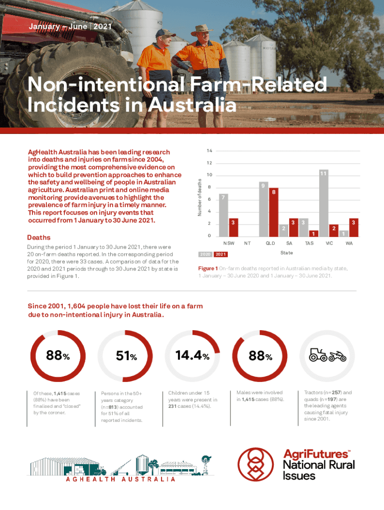 January June | 2021Nonintentional Correlated Incidents in Australia 14 121110 Number of deathsAgHealth Australia has been leading research into deaths and injuries on farm since 2004, providing the