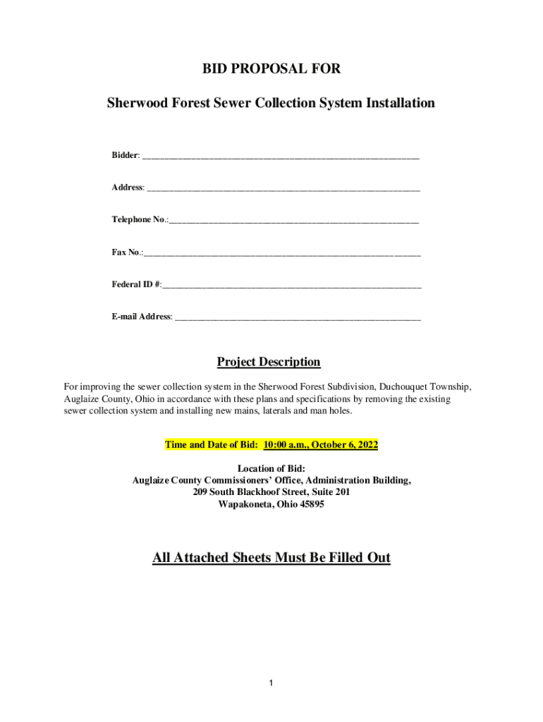 Sherwood Forest Sewer Collection System InstallationBidder: ___Address: ___Telephone No.:___Fax No.:___Federal ID #:___Email Address: ___Project Description