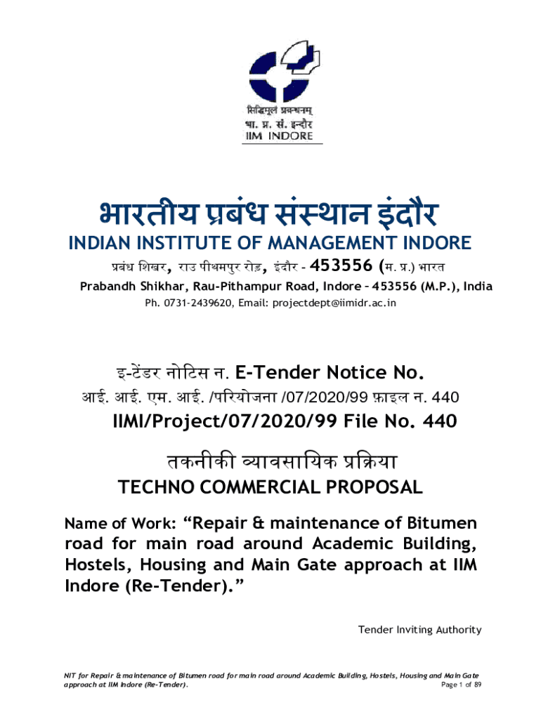 pH. 07312439620, Email: projectdept@iimidr.ac.in. Tender Notice No.