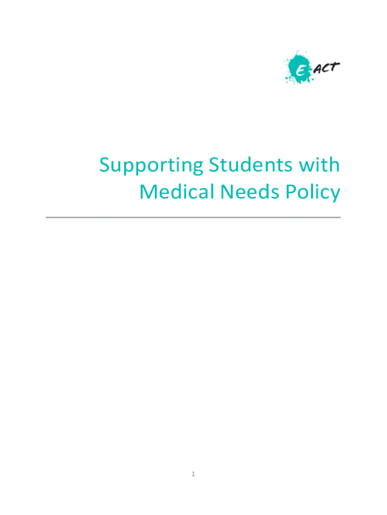 Supporting Students with Medical Needs Policy1Document provenance This policy was approved by Trustees as follows Approver: Education Committee Executive Leadership Team (ELT) Owner: National Director