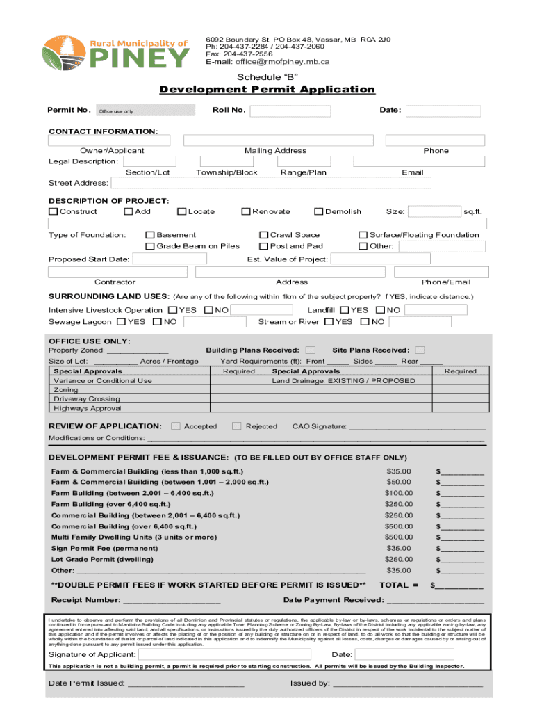 Fax: 2044372556Email: office@rmofpiney.mb.caSchedule Development Permit Application