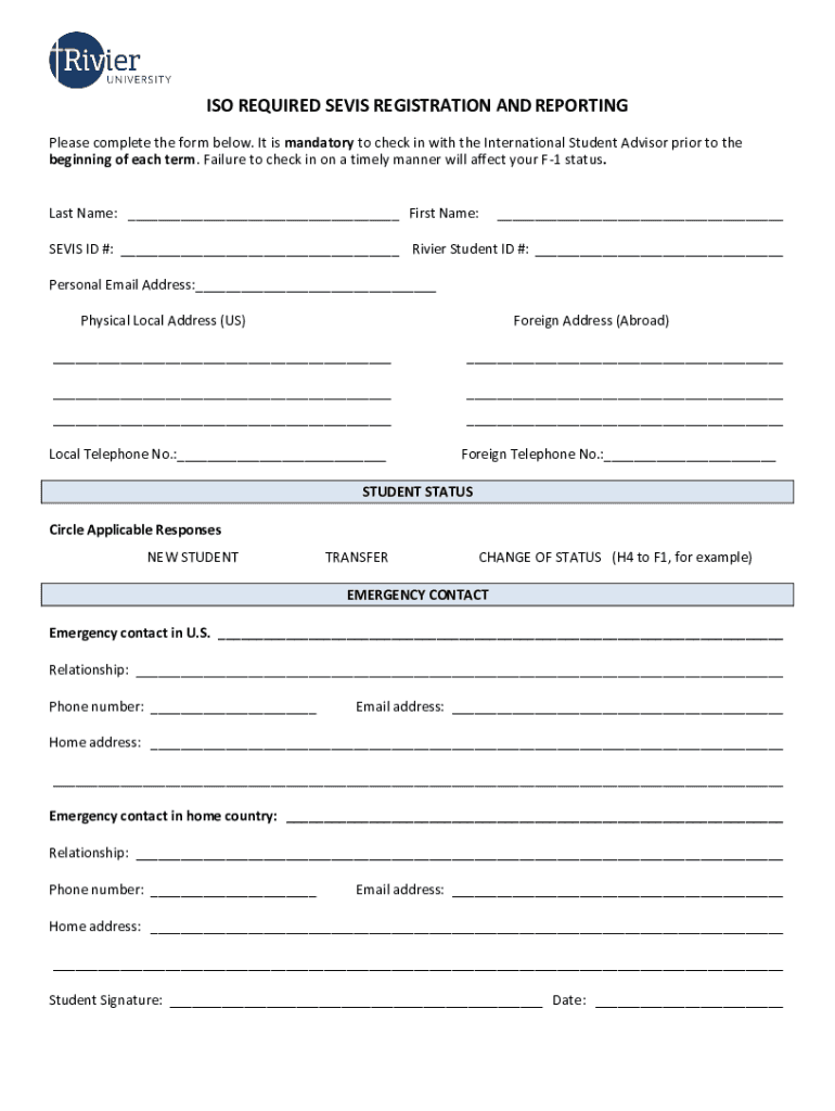 Get the free ISO REQUIRED SEVIS REGISTRATION AND REPORTING