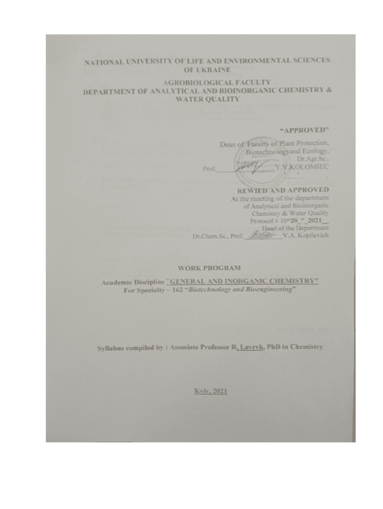 Academic discipline description GENERAL AND INORGANIC CHEMISTRY Field of knowledge, direction, specialty, education and qualification level Educational and Qualification level bachelor qualification