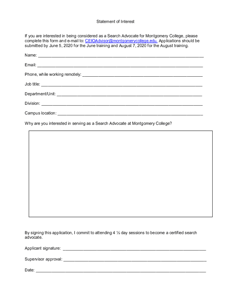 Get the free Search Advocate Program Application - insidemc montgomerycollege