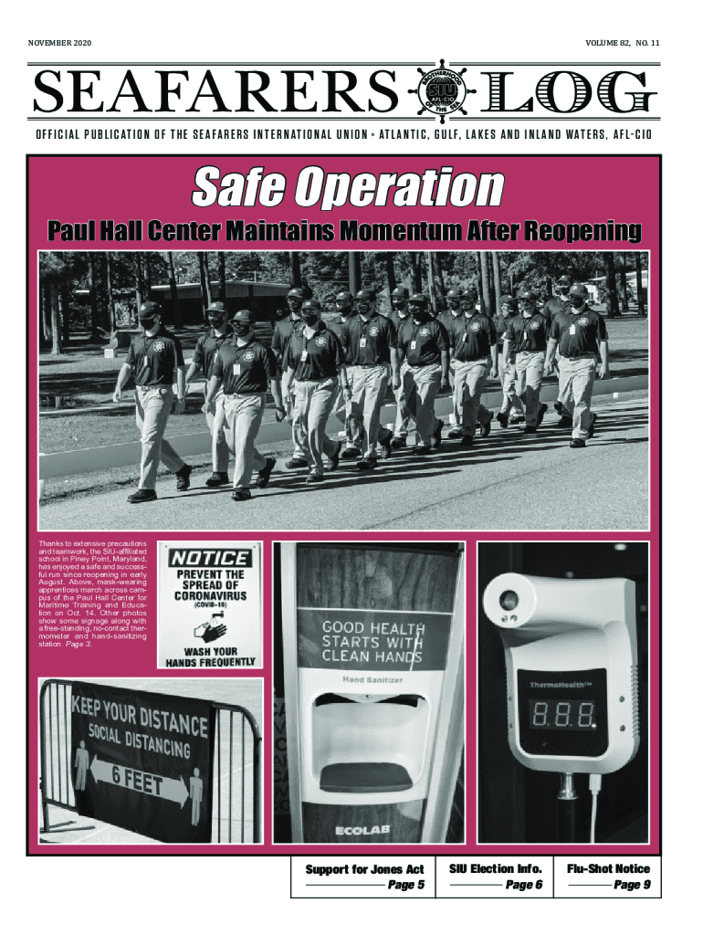 NOVEMBER 2020VOLUME 82, NO. 11O F I C I A L P U B L I C AT I O N O F T H E S E A F A R E R S I N T E R N AT I O N A L U N I O N AT L A N T I C, G U L F, L A K E S A N D I N L A N D W AT E R S, A F