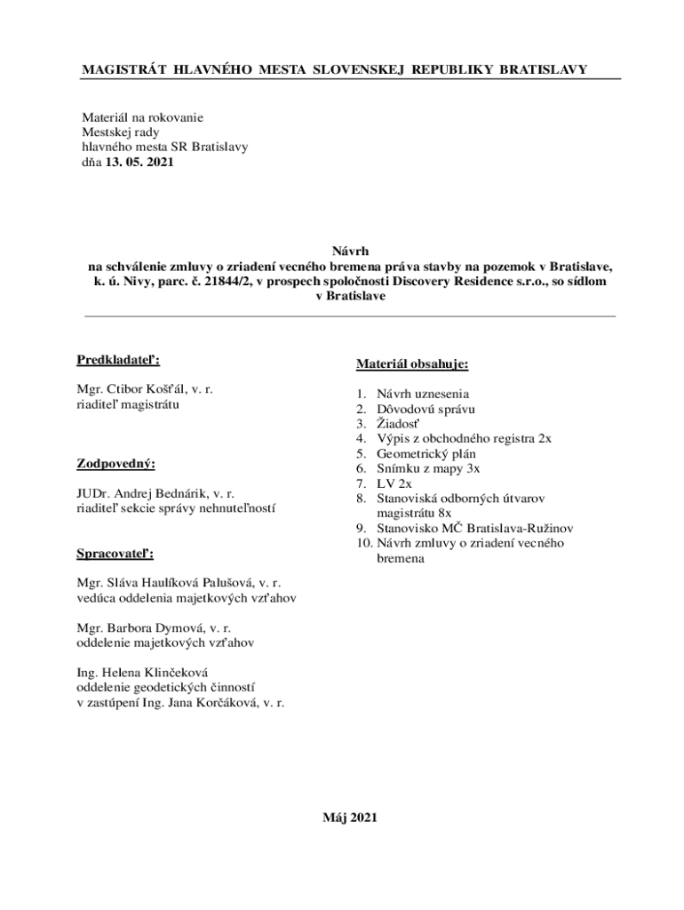 Get the free na schvlenie zmluvy o zriaden vecnho bremena prva stavby na pozemok v Bratislave,