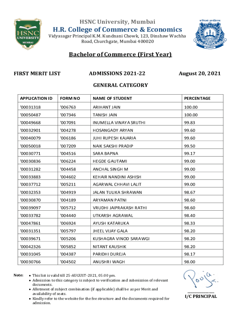 Road, Churchgate, Mumbai 400020Bachelor of Commerce (First Year)