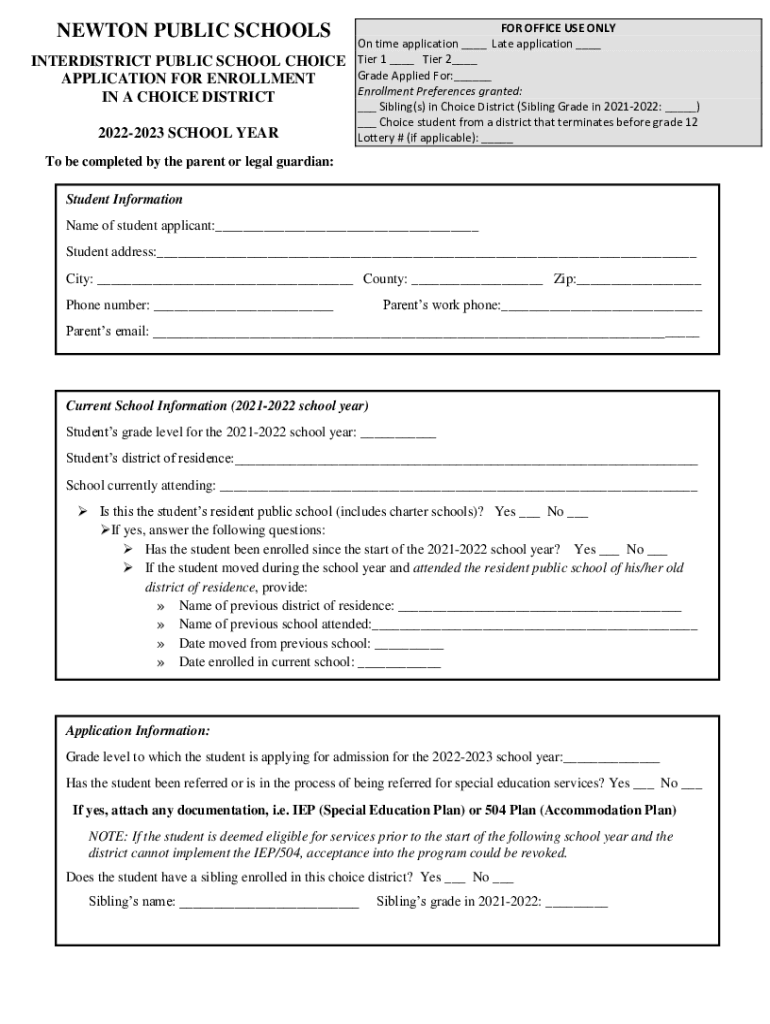 20222023 SCHOOL YEAR OFFICE USE ONLY
