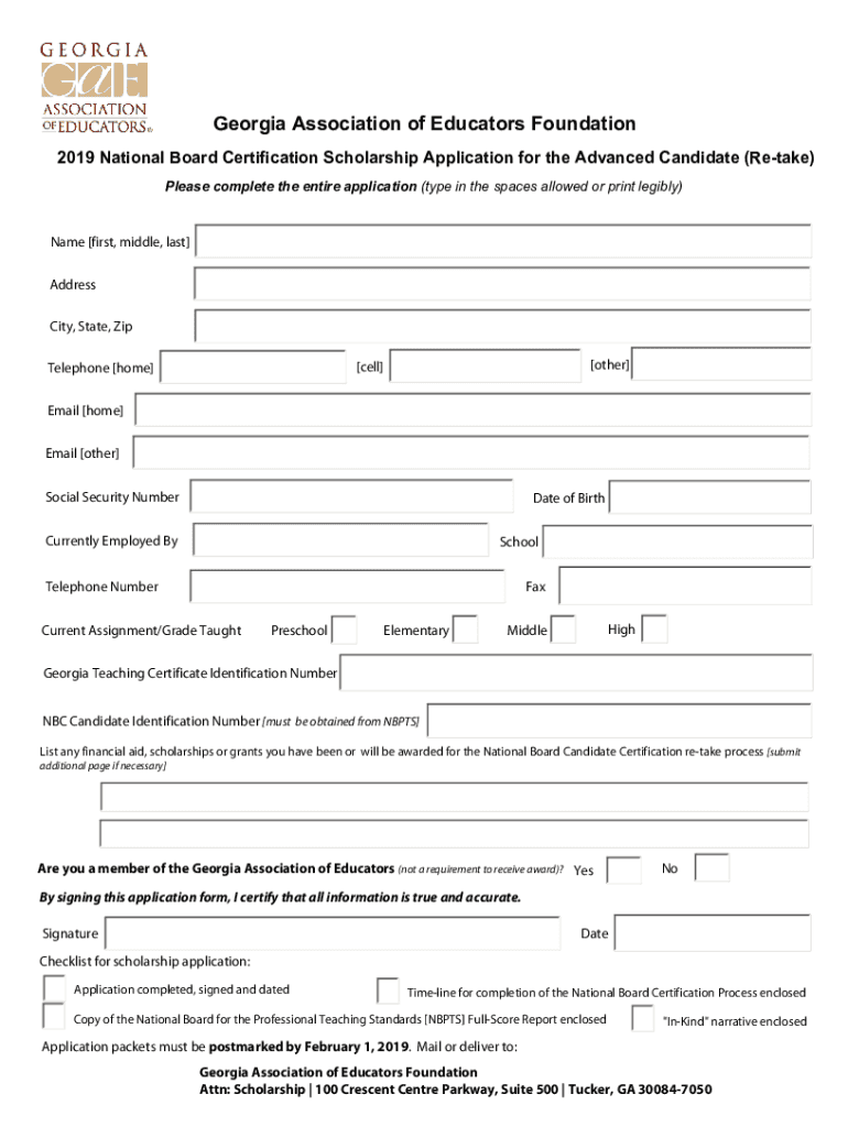 2019 National Board Certification Scholarship Application for the Advanced Candidate (Retake)
