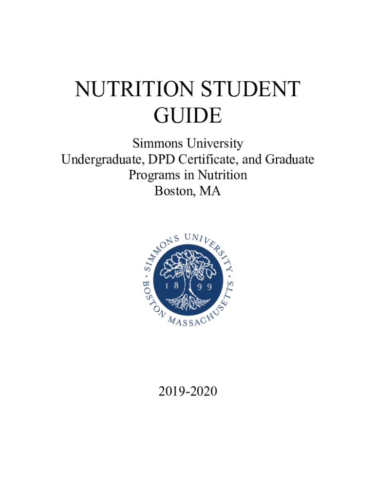 NUTRITION STUDENT GUIDE Simmons University Undergraduate, DPD Certificate, and Graduate Programs in Nutrition Boston, MA20192020TABLE OF CONTENTS Section 1: Introduction Academic Calendar Our Mission