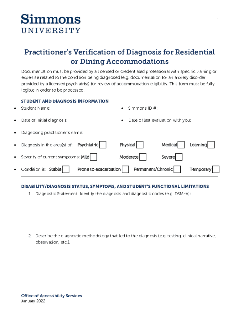 Get the free Simmons University OAS - Practitioner's Verification of Diagnosis For Residential or...