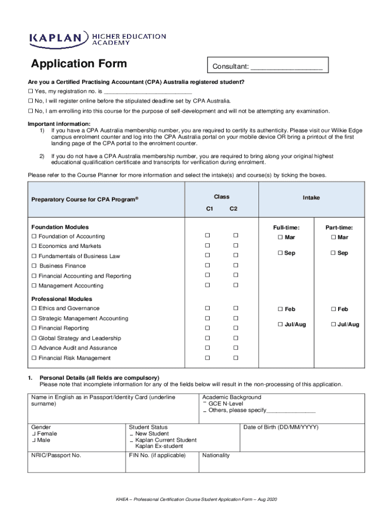 Application FormConsultant: ___Are you a Certified Practicing Accountant (CPA) Australia registered student? Yes, my registration no. is ___ No, I will register online before the stipulated deadline