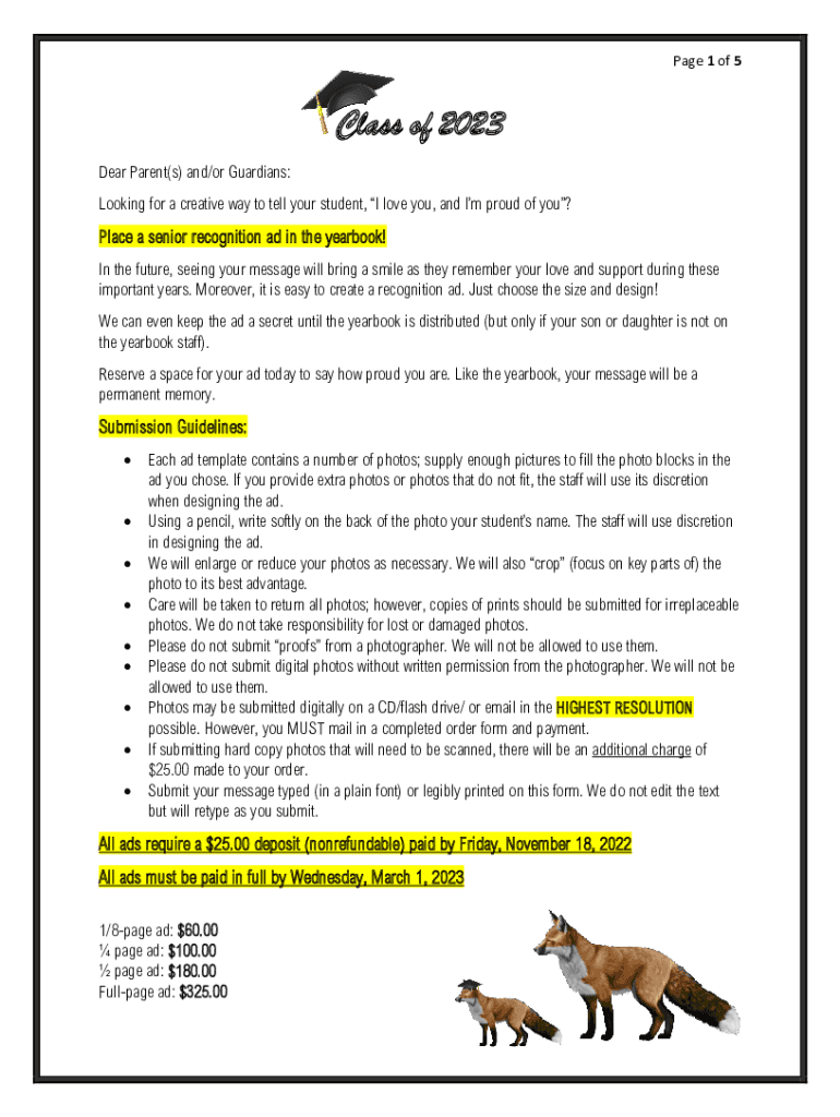 Page 1 of 5Class of 2023 Dear Parent(s) and/or Guardians: Looking for a creative way to tell your student, I love you, and I'm proud of you? Place a senior recognition ad in the yearbook! In the future,