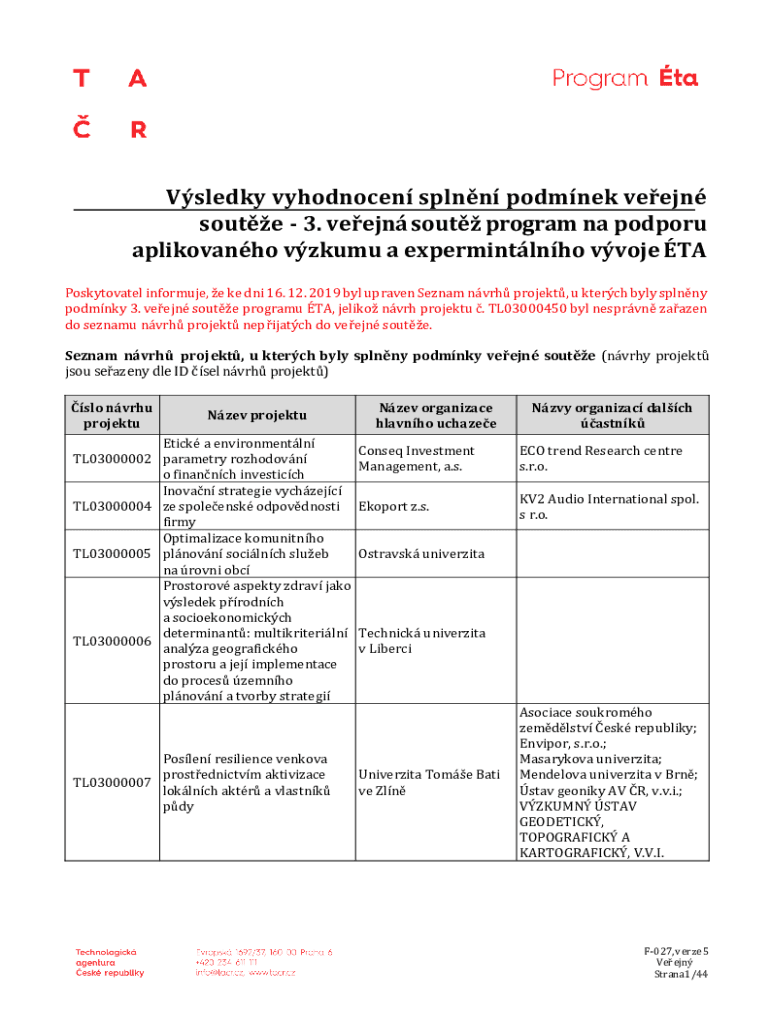 Poskytovatel informed, eke DNI 16. 12. 2019 BYL up raven SERNAM NRH project, u teach