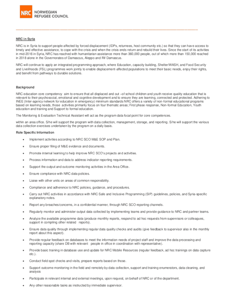 Get the free NRC in Syria NRC is in Syria to support people ... - Job sy