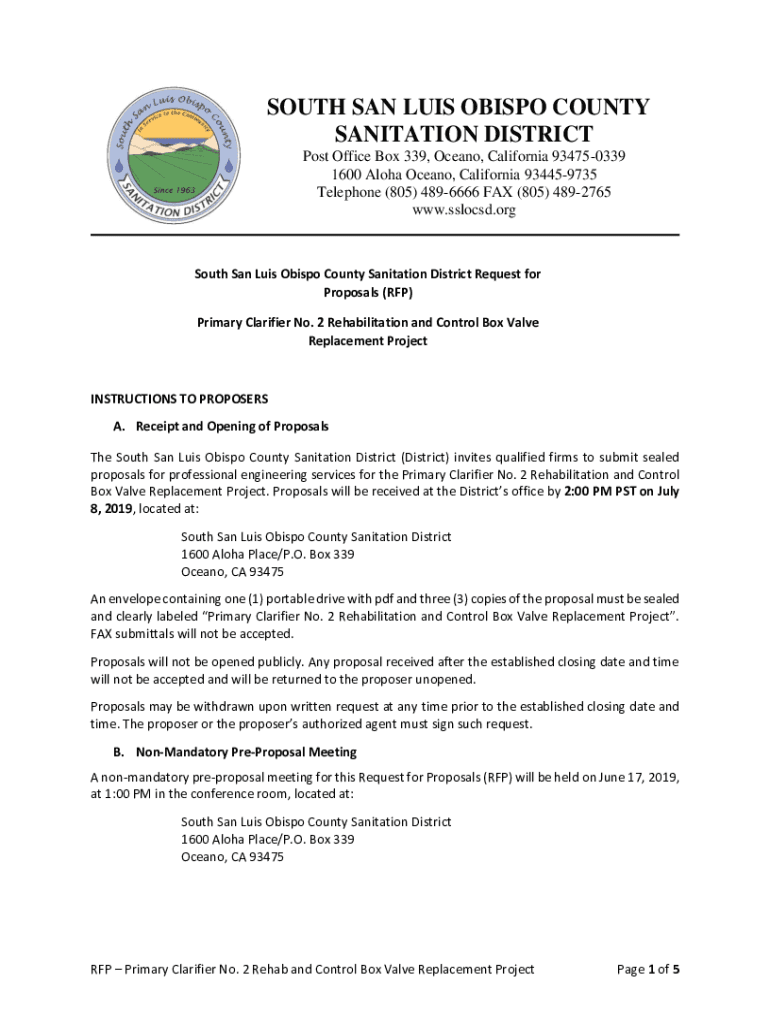 SOUTH SAN LUIS OBISPO COUNTY SANITATION DISTRICT Post Office Box 339, Ocean, California 934750339 1600 Aloha Ocean, California 934459735 Telephone (805) 4896666 FAX (805) 4892765 www.sslocsd.orgSouth