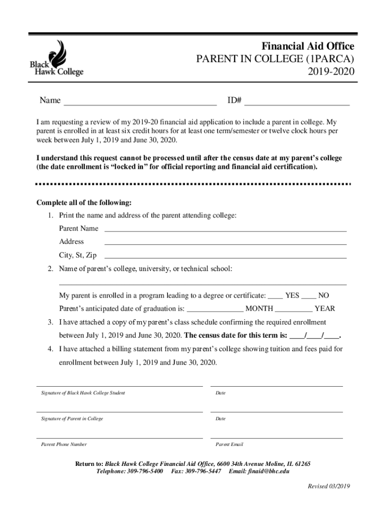 Get the free Financial Aid Office PARENT IN COLLEGE (1PARCA) 2019 ...