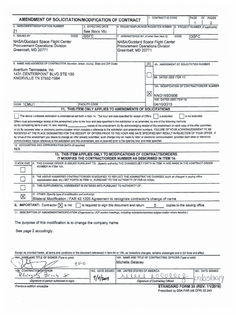 Get the free NNG15SD90B Mod 21 Name change - Nasa SEWP