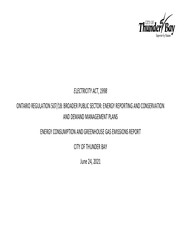 ELECTRICITY ACT, 1998 ONTARIO REGULATION 507/18: BROADER PUBLIC SECTOR: ENERGY REPORTING AND CONSERVATION AND DEMAND MANAGEMENT PLANS ENERGY CONSUMPTION AND GREENHOUSE GAS EMISSIONS REPORT CITY OF